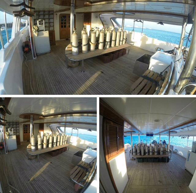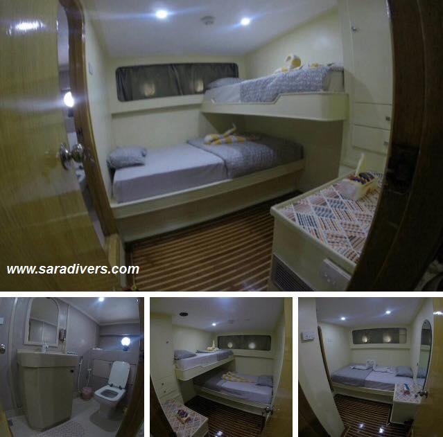 ダイビングサファリ用のボートは各部屋にトイレやエアコン、真水の温水シャワーなど設備もちょっとしたホテル並みです。